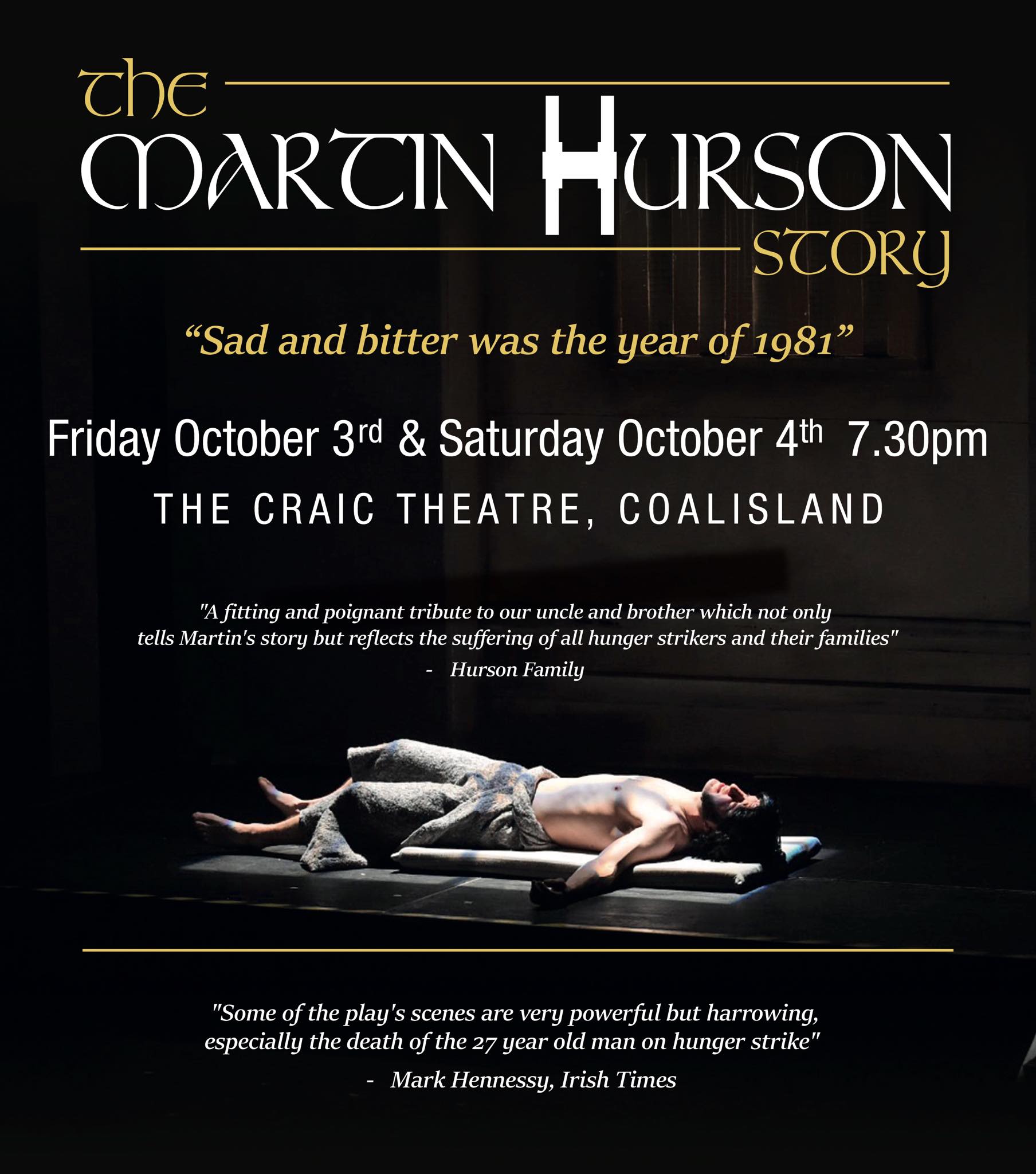 Gerry Cunningham ( author of “Blood Upon The Rose”) tells the story of this country lad in a heart breaking and honest way. There is no happy ending, no fairytale story. Cunningham along with an excellent cast tell it exactly as it was in those very dark days of 1981. The story of Martin Hurson begins with his arrest and brutal interrogation in Omagh Barracks . His eventual sentence and participation in the no wash protests leads to his joining the 2nd hunger-strike in May 1981. This is a hard hitting story acted out by a brilliant cast with no frills and no sense of triumphalism. It’s a story that could be told, should be told and will be told for future generations to appreciate and understand the horrors of those dark days of our recent past.